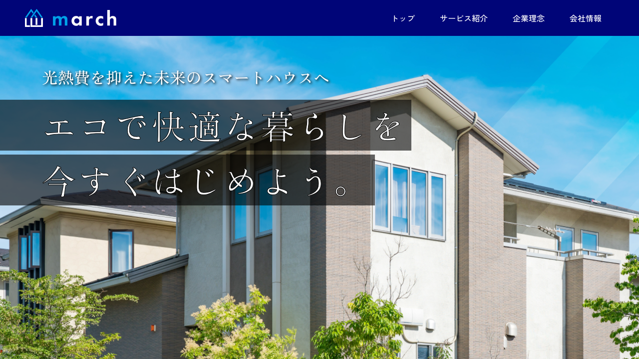 株式会社march株式会社marchは、自然エネルギーを活用したスマートハウスの提案を軸に、お客様の快適な暮らしと環境保護に貢献する企業です。