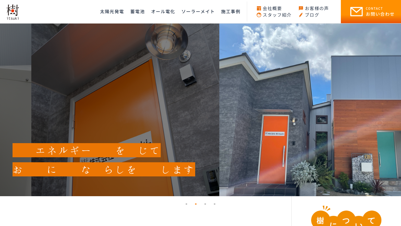株式会社樹-itsuki-株式会社樹-itsuki-は、広島県福山市で太陽光発電や蓄電池、オール電化の提案から施工、アフターフォローまでを一貫して行う会社です。