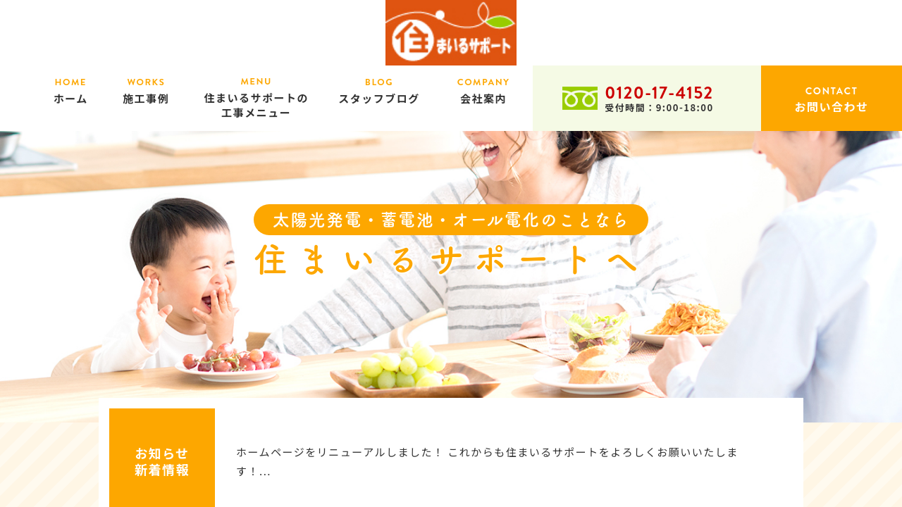 株式会社 住まいるサポート株式会社 住まいるサポートは、岡山県岡山市で太陽光発電、蓄電池、オール電化の販売・施工を行う会社です。