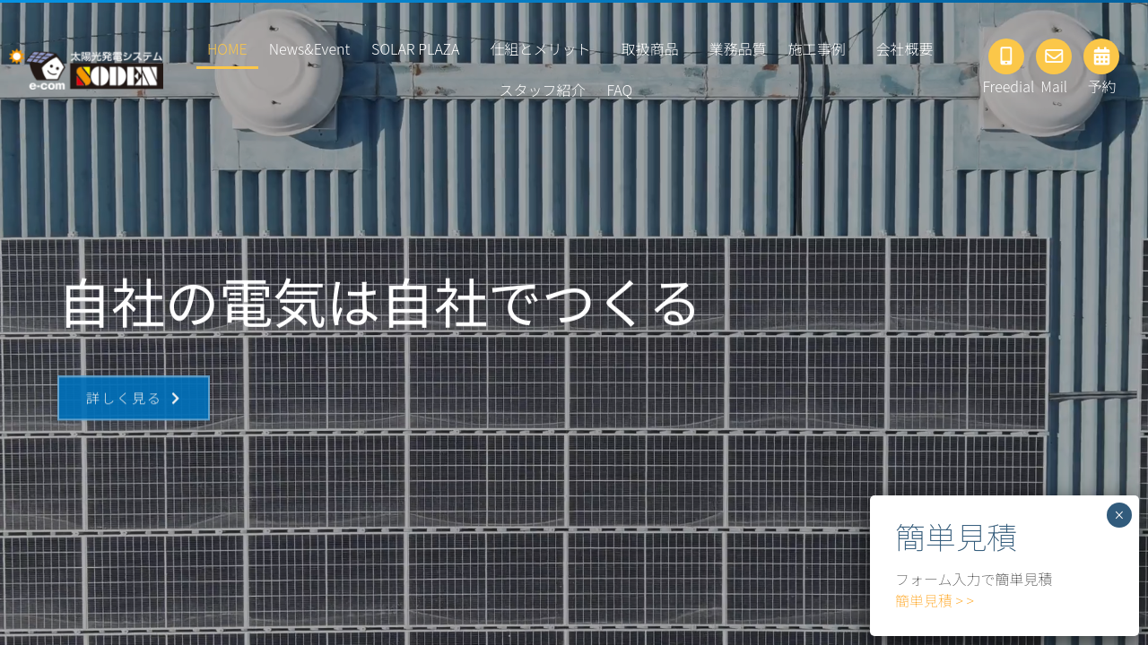 株式会社ソーデン社株式会社ソーデン社は、岡山県で太陽光発電システムの販売・施工・メンテナンスを専門とする会社です。