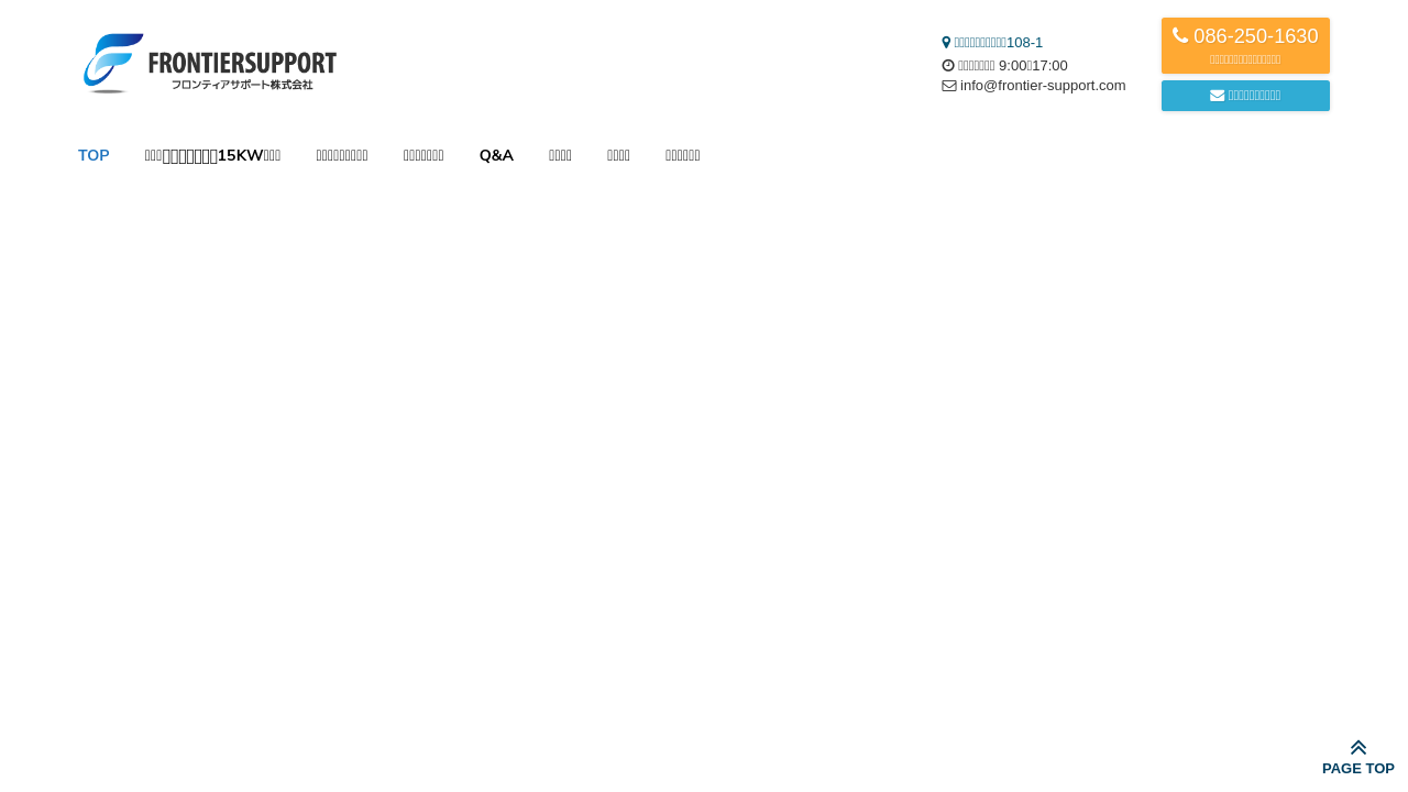 フロンティアサポート株式会社フロンティアサポート株式会社は、岡山県岡山市南区を拠点とする、太陽光発電システムの専門メンテナンス会社です。