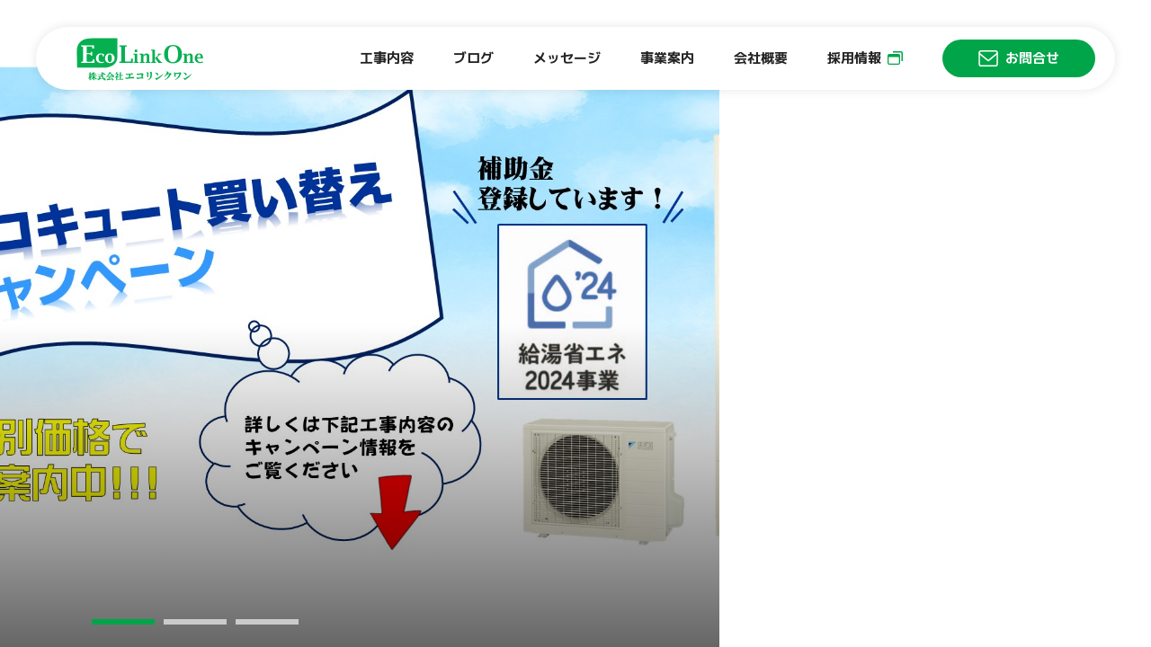 株式会社エコリンクワン株式会社エコリンクワンは、お客様にとって大切な「住まい」において、Ecoで快適な暮らしをお届けすることを目指す、太陽光発電・蓄電池・オール電化の専門会社です。