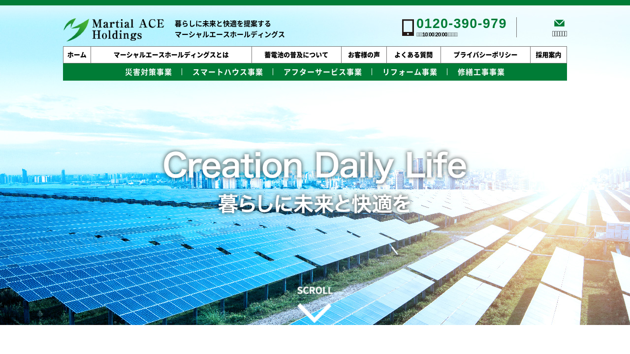 株式会社 マーシャルエースホールディングス株式会社 マーシャルエースホールディングスは、「暮らしに未来と快適を」をテーマに、住宅・エネルギーなど時代のニーズに合わせた快適な暮らしを提案する企業です。